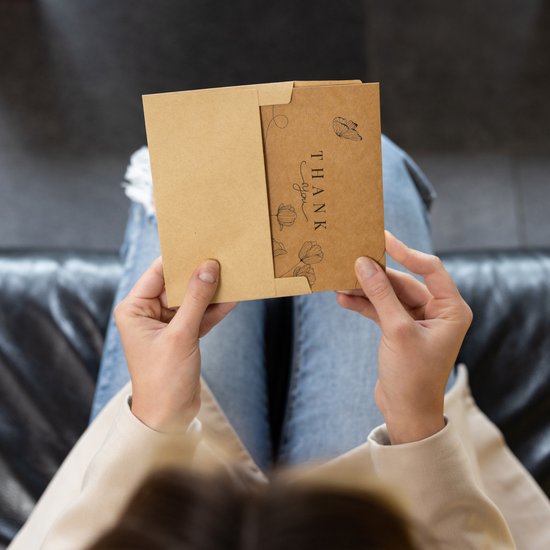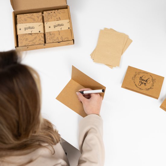 Partizzle 36x Kraft Thank You Cards Set - Cartes de remerciement - Cartes de vœux - Cartes postales - Cartes avec enveloppes - 15x10 cm
