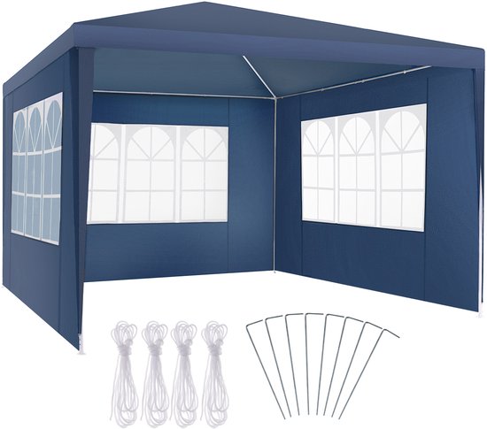 tectake® Pavillon - avec armature renforcée - Tente de réception 3x3 m - Bâche imperméable - Panneaux latéraux amovibles - Pavillon de jardin résistant aux intempéries - Lignes de tension et piquets inclus - Bleu - Tente pliante pop-up