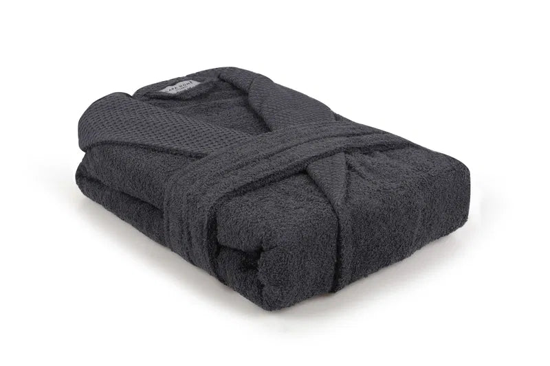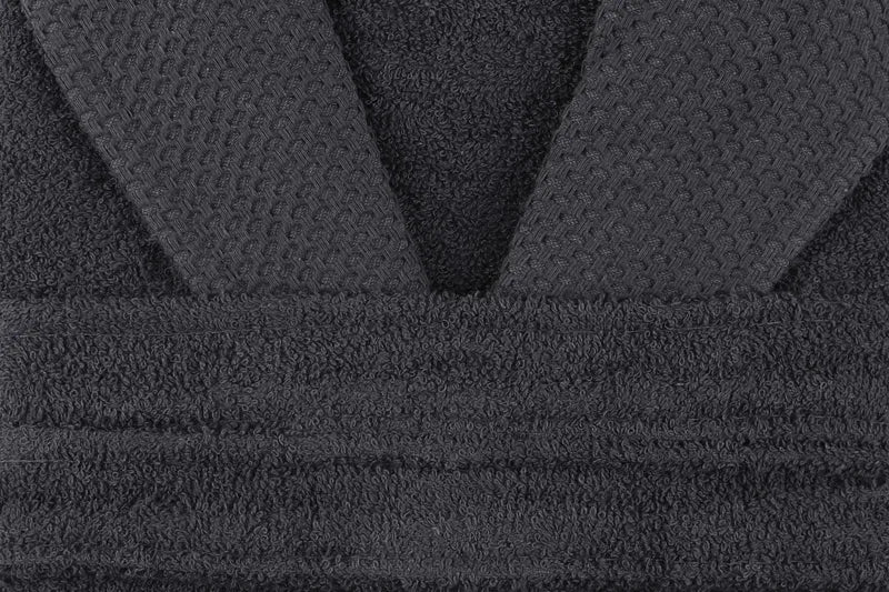 Détails du produit - Peignoir éponge 100 % coton anthracite haute densité avec ceinture classique en tissu éponge absorbant Forme