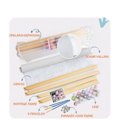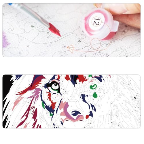 - Cet ensemble comprend une toile avec des numéros, 3 pinceaux, de la peinture (avec les numéros correspondants, un cadre de montage et des punaises pour fixer le cadre.