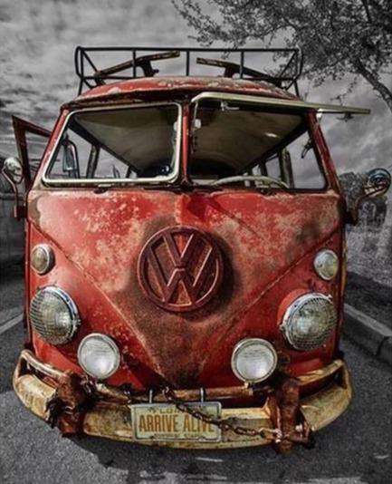 PaintingsCart - Le vieux bus rouge - 30x40 cm