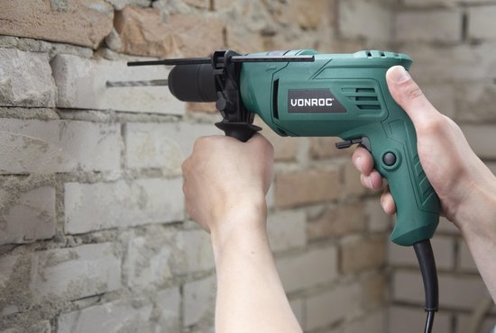 Trouver des trous dans la maçonnerie ou le béton ? Avec la puissante perceuse à percussion de VONROC, vous pouvez réaliser efficacement divers travaux de perçage et de percussion à la maison, à l'atelier ou au garage. En un rien de temps, vous pourrez fixer ou suspendre divers objets !