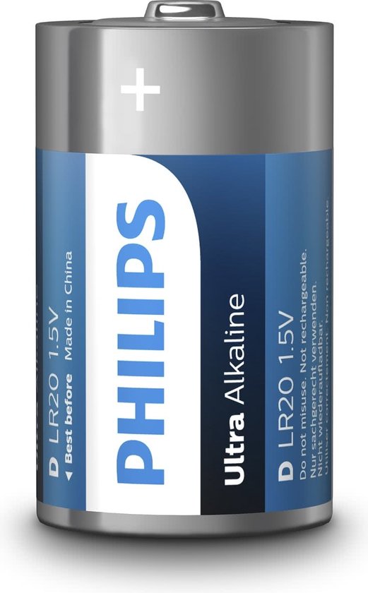 Les piles D LR20E2B sont vendues par paquets de deux. Ces piles sont exemptes de métaux lourds nocifs tels que le cadmium, le mercure et le plomb. Elles conservent au moins 80 % de leur niveau d'énergie initial pendant une période de cinq ans.