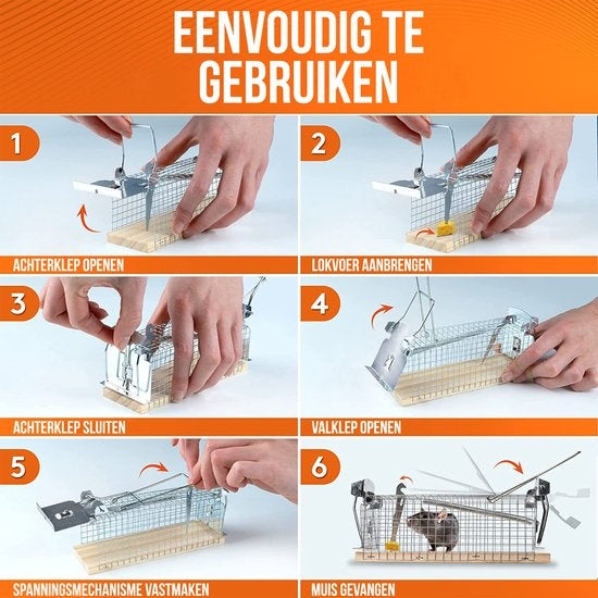 Ce set contient 2 pièges à souris respectueux des animaux. Ce piège à souris respectueux des animaux est la solution idéale pour tous ceux qui ne veulent pas utiliser de poison et qui souhaitent se débarrasser des souris de manière humaine.