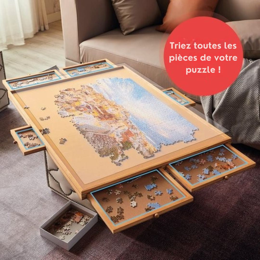 Les six tiroirs facilitent l'organisation de vos pièces de puzzle.