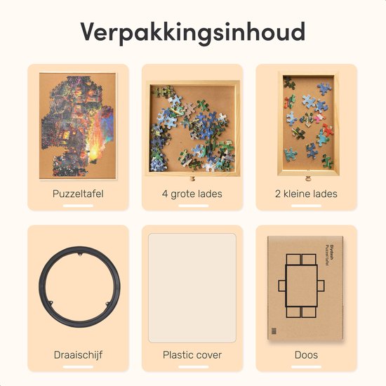 Plateau de puzzle rotatif avec système de rangement - 6 tiroirs - 1500 pièces - Bois - Table de puzzle - Classeur de puzzle - 64 x 86 x 4 cm - Couvercle de protection inclus - Tapis de puzzle - Mallette - Bois