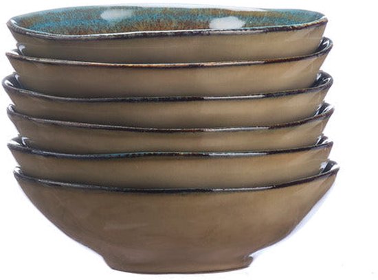 En ce qui concerne la production, après la première cuisson à basse température de l'argile, des émaux réactifs de différentes couleurs sont appliqués sur le grès, ce qui permet d'obtenir un relief unique et éclatant. Les variations de couleur observées d'une pièce à l'autre sont le résultat d'une ingénieuse combinaison artisanale de techniques de cuisson et de la façon dont l'émail est appliqué.