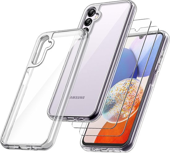 Podec Case Suitable for Samsung Galaxy A14 5G Transparent Phone Case - Anti-Shock Case Cover with 2x Screen Protector