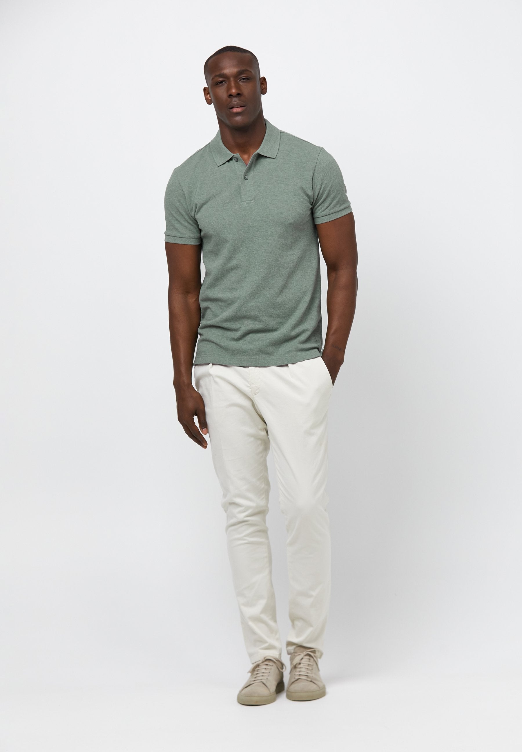 Ce polo PROFUOMO au vert mélangé intemporel est conçu pour les hommes qui apprécient le confort, le style et l'artisanat. La chemise est fabriquée en 100% coton de haute qualité avec une structure piqué raffinée, offrant une sensation d'usure respirante, douce et durable. Grâce à sa coupe régulière et à sa forme droite, elle offre un ajustement naturel qui tombe confortablement sans être trop serré ou trop large.