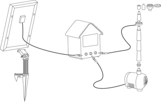 - Pompe, panneau solaire et 4 accessoires pour la fontaine