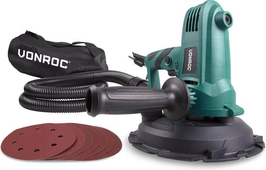VONROC Ponceuse - 750W - Ø180MM - Plafond et mur - Tuyau et sac de collecte de poussière inclus