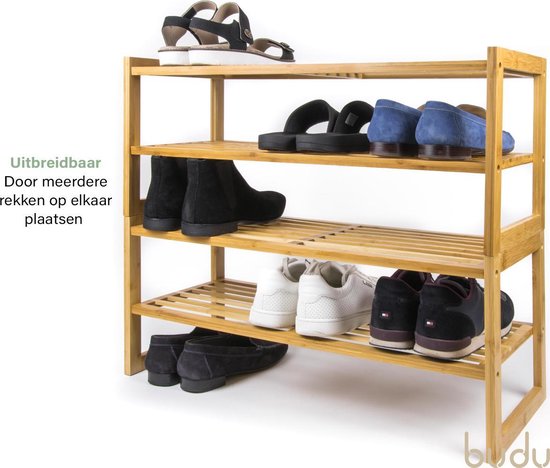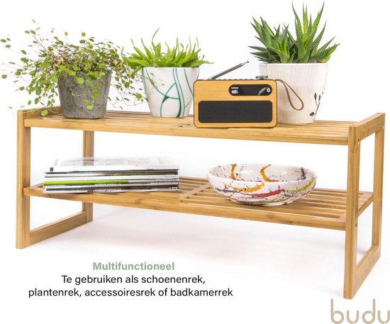 Budu Shoe Rack (2 levels) - Bamboo Shoe Rack - Wooden Shoe Cabinet - Shoe Rack wood