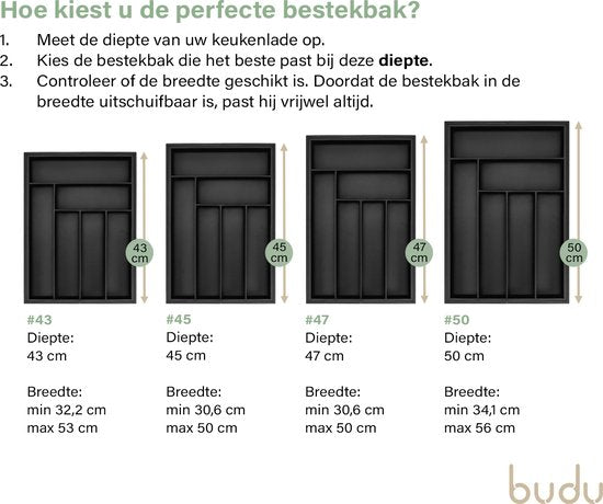 Veuillez noter que la profondeur du range-couverts est indiquée sur bol.com en tant que "largeur du produit". Veuillez vérifier les images ou le texte pour vous assurer que vous avez choisi le bon range-couverts pour votre tiroir à couverts.