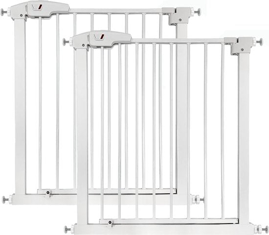 Goliving Porte d'escalier sans perçage - 2 pièces - 75 à 103 cm - Fixation par pince - Modèle à pince - Extensible - Métal - Barrière pour enfants - Barrière pour chiens - Blanc