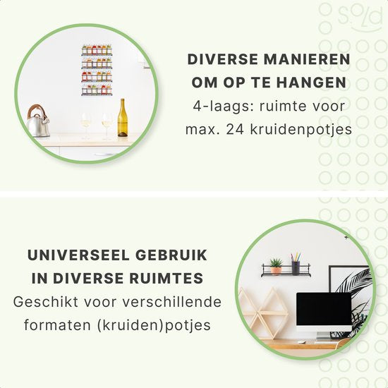 Vous êtes également partisan d'une cuisine bien rangée ? Alors les porte-épices de S.old sont parfaits pour vous. Ces porte-épices suspendus vous aident à organiser toutes vos épices afin qu'elles soient toujours à portée de main, ce qui est très pratique lorsque vous cuisinez ! Les porte-épices sont faciles à fixer au mur ou dans un meuble de cuisine et sont livrés avec le matériel de fixation nécessaire. Conseil : ils sont parfaits combinés avec les pots à épices assortis de S.old.