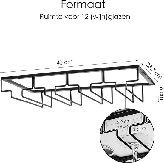 Porte-verres à vin - 2 pièces - noir - 12 verres - 40 cm x 22,5 cm x 6 cm - Porte-verres à vin - Porte-verres à vin suspendu