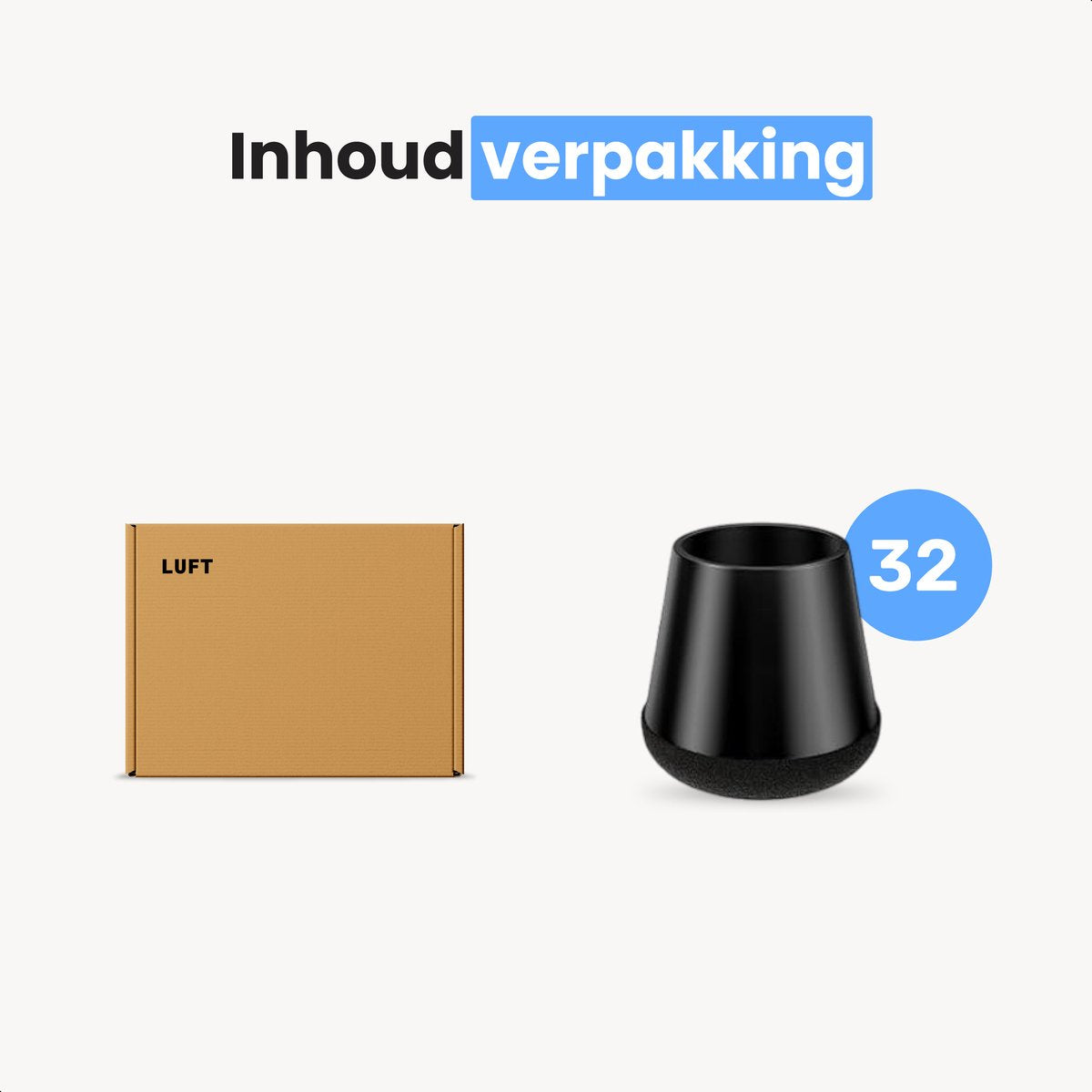 Luft Protège-jambes de chaise avec feutre - 32 pièces - Rond - 12-16 mm - Noir - Protection du sol contre les rayures - Protège-jambes de chaise avec insonorisation