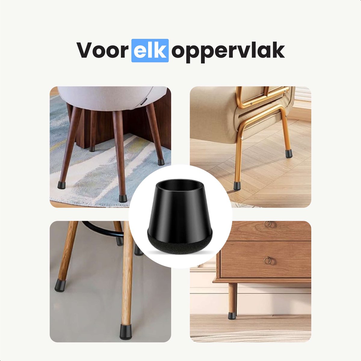 Protégez efficacement vos sols et vos meubles avec les protecteurs de pieds de chaises Luft avec feutre. Cet ensemble de 32 protections durables est spécialement conçu pour réduire les rayures, l'usure et le bruit. La combinaison de plastique de haute qualité et de feutre synthétique doux assure une protection optimale du sol et permet aux chaises de se déplacer en douceur sans causer de dommages.