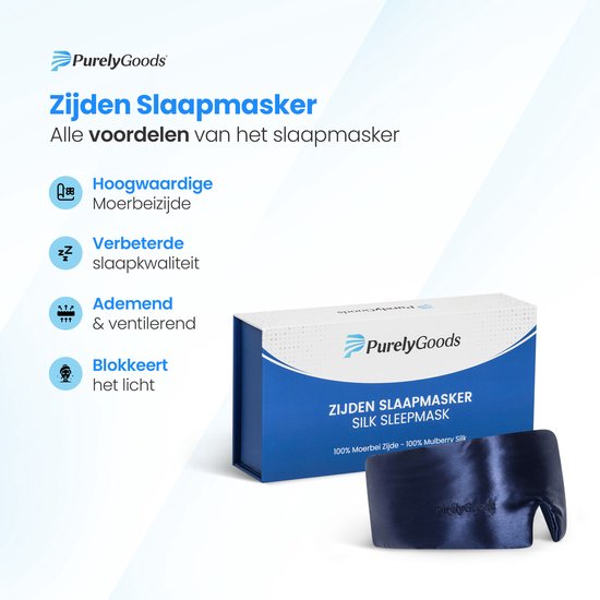 PurelyGoods® Masque de sommeil en soie - Masque de sommeil pour les yeux - 100 % soie de mûrier - occultant - femmes et hommes - bleu marine