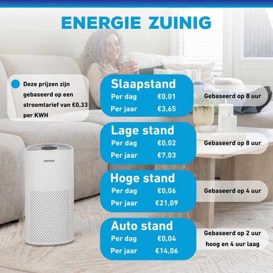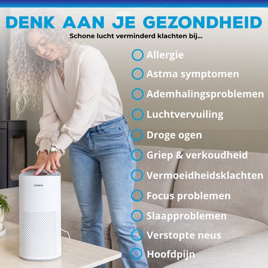 Respirez à nouveau avec soulagement grâce au purificateur d'air avancé et compact de Sofresh. Cet appareil est la source idéale pour un climat intérieur sain, combinant un puissant système de filtration 6-en-1 avec une technologie intelligente pour un fonctionnement silencieux dans n'importe quelle pièce. Le Sofresh purificateur d'air est conçu pour éliminer les plus petites particules invisibles de l'air. Cela fait de l'appareil une source fiable d'air pur ; le système de filtration avec filtre HEPA élimine jusqu'à 99,97 % des particules telles que le pollen, la poussière, la fumée et même les microplastiques. Grâce au capteur PM2.5 intégré, la qualité de l'air est mesurée en continu et affichée sur l'écran via un système de couleurs vives. En mode automatique, l'aspirateur adapte sa vitesse directement à la pollution mesurée, ce qui vous garantit toujours les meilleurs résultats sans que vous ayez à vous en occuper vous-même. L'aspirateur a été conçu pour répondre aux besoins des consommateurs et des entreprises. Purification de l'air de qualité supérieure et capteurs intelligents