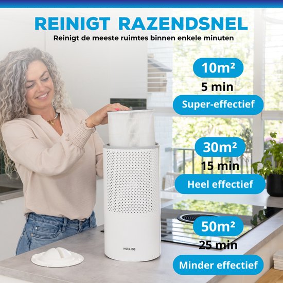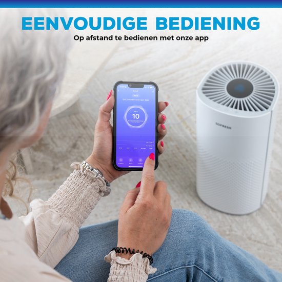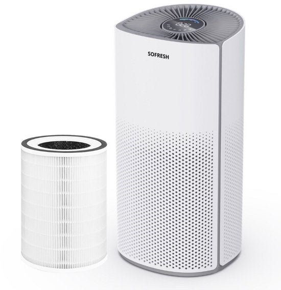 Sofresh - Purificateur d'air avec application - Pour les pièces jusqu'à 30 m² & système de filtration 6 en 1 - Équipé d'un filtre Hepa et d'un indicateur de qualité de l'air - 195 x 195 x 388 mm - Plastique blanc