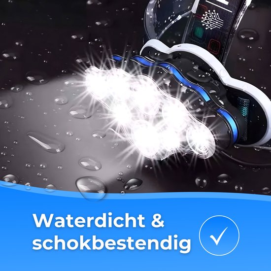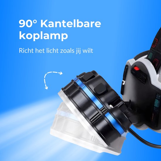 La sangle élastique est facile à ajuster et les coussinets de tête propres offrent un confort supplémentaire. Les 8 lampes frontales peuvent être tournées jusqu'à 90 degrés.