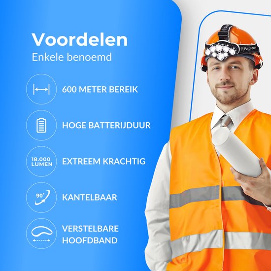 PuroTech Military Headlamp - Lampe frontale LED rechargeable - Extra puissante - Lampe frontale - Lampe frontale 8 LED - 18000 lumens - Portée 600 mètres - Réglable - Torche militaire