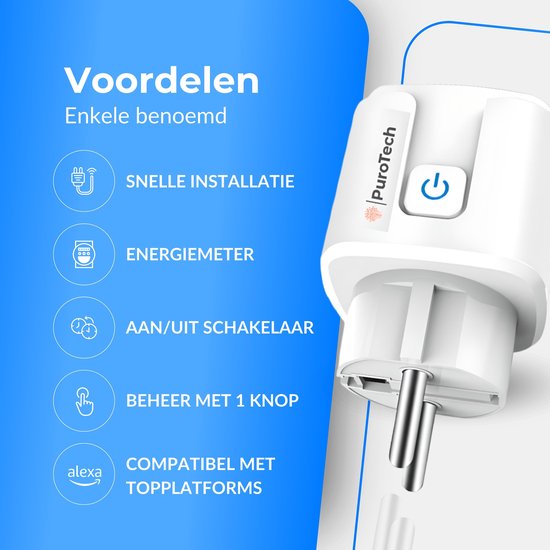 PuroTech Smart Plug - Timer & Energy Meter - Smart Plug - Convient à Alexa / Google Home - Compteur de consommation - Coûts énergétiques