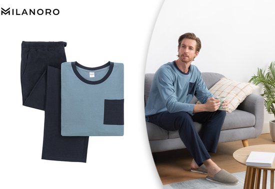Milanoro - Pyjama homme en coton - Bleu - XXL