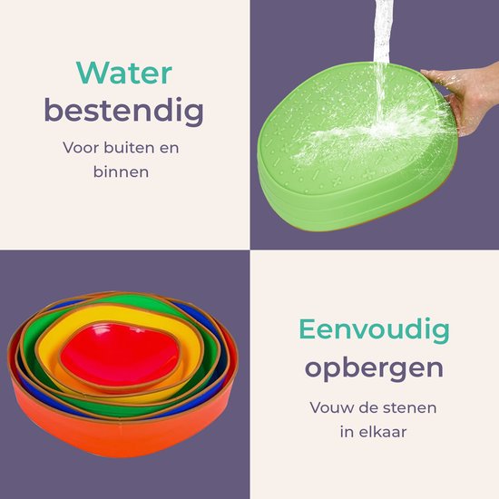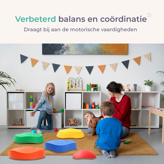 Avec l'ensemble Stones Stacking, la créativité et le développement sont encouragés car votre enfant apprend de manière ludique à se tenir en équilibre, à distinguer les couleurs et à évaluer les distances. Créez un parcours, jouez à "Le sol est de la lave" ou empilez les briques les unes sur les autres - les possibilités sont infinies !