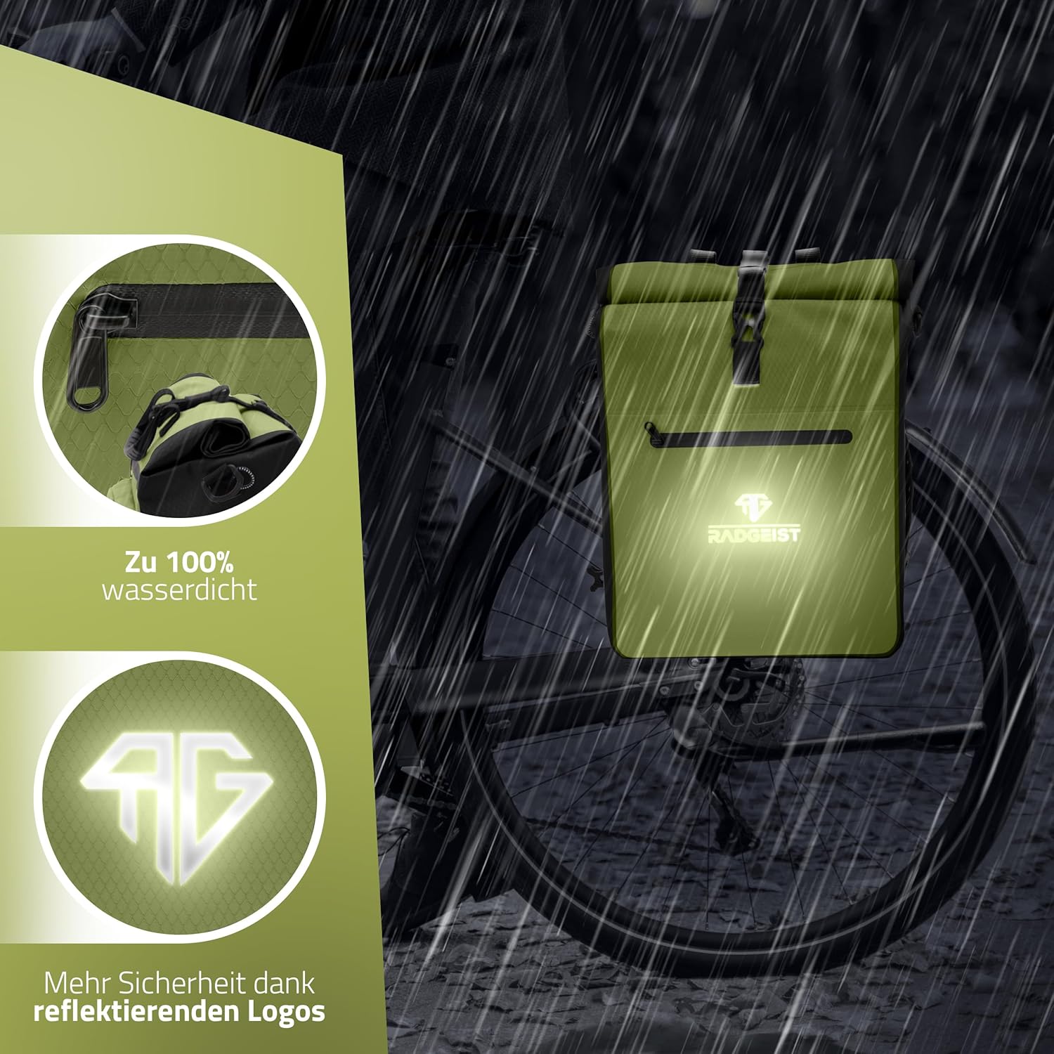 RADGEIST 3in1 sac à vélo pour porteur I sac à vélo et sac à dos 25L I 100% étanche