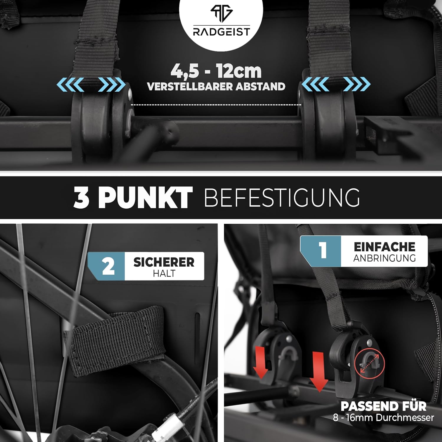 - Convient à tous les vélos : grâce aux adaptateurs fournis, la sacoche avec fonction sac à dos s'adapte à tous les porte-bagages courants d'un diamètre de 8 à 16 mm. De plus, le système spécialement conçu peut être monté et ajusté sans outils .