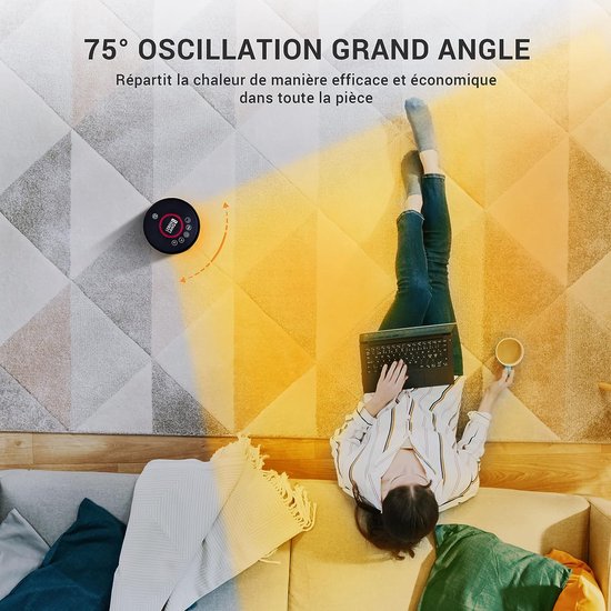 >Avec deux modes de chauffage et un thermostat réglable, vous contrôlez la température et la consommation d'énergie. La fonction oscillation assure une répartition uniforme de la chaleur dans la pièce. La télécommande fournie permet de commander le chauffage encore plus facilement, sans avoir à se lever.