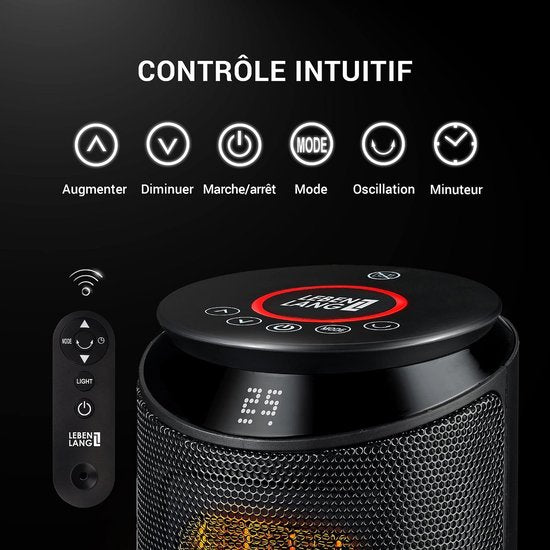 LEBENLANG Radiateur soufflant - Radiateur compact & économe en énergie avec télécommande - Température réglable et fonction minuterie - 2000W