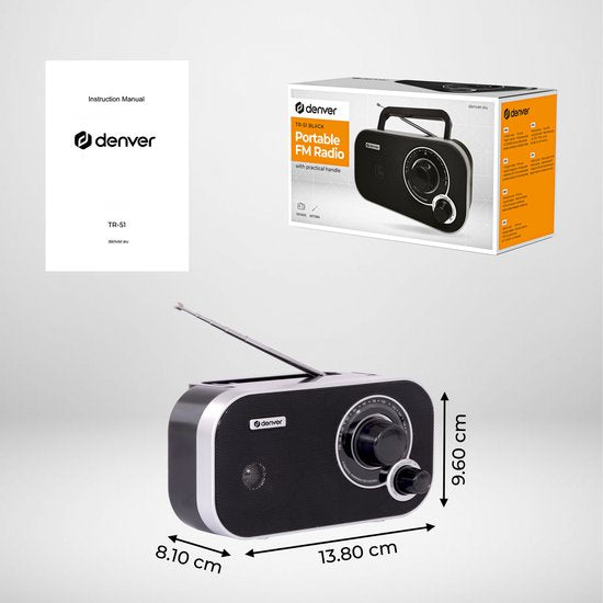 Radio Retro FM - Denver - Fonctionne sur batterie ou sur secteur - Radio portable - TR51 - Noir
