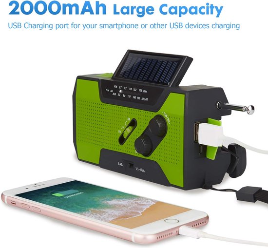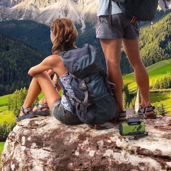 Avec une puissante batterie de 2000 mAh, cette radio offre la possibilité de charger vos appareils.Avec une puissance de 2000 mAh, cette radio à énergie solaire peut également fonctionner comme une banque d'énergie. Vous pouvez ainsi recharger facilement votre téléphone portable, votre tablette et d'autres gadgets, ce qui vous permet d'être toujours alimenté lors de vos aventures en plein air.