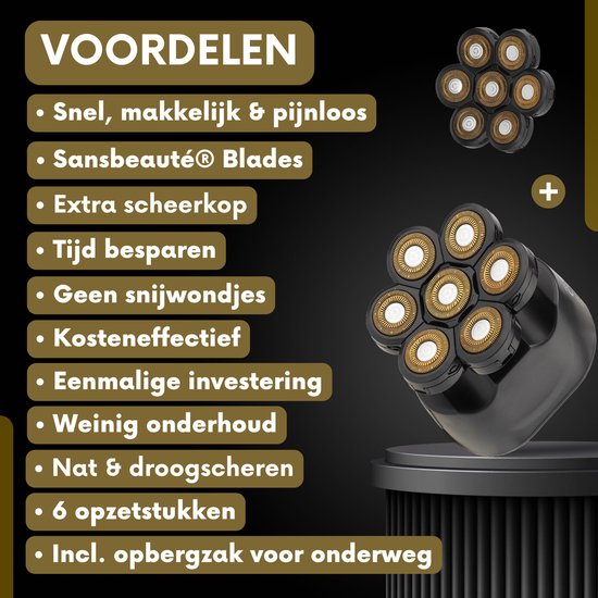 ✓ Tête de rasage flexible - Avec 7 ( !) têtes de rasage rondes, le rasoir Sansbeauté® offre une surface de rasage étendue, ce qui permet de prendre plusieurs poils en une seule fois. Les sept lames flexibles 7D se déplacent en douceur sur votre menton, votre crâne et vos joues ; il n'y a presque rien de plus facile !