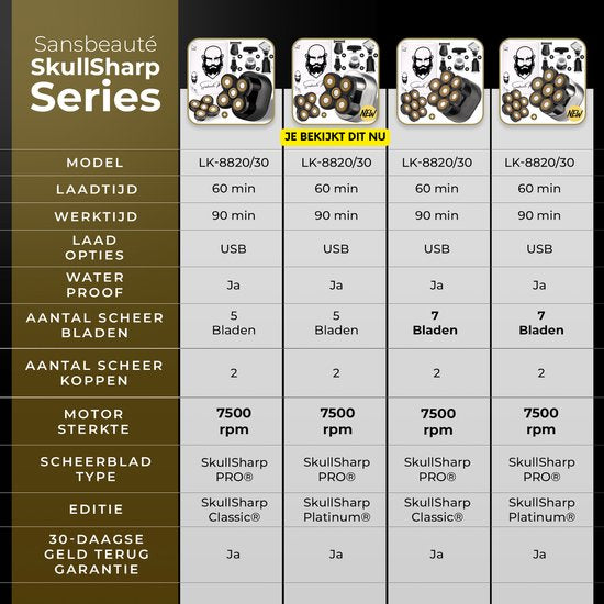 ✓ Rencontrez le tout nouveau Sansbeauté SkullSharp Platinum | 5 HEAD - Le dernier ajout à notre célèbre gamme Sansbeauté SkullSharp. Le Sansbeauté SkullSharp Platinum possède les mêmes spécifications impressionnantes que le populaire Sansbeauté SkullSharp Classic, mais maintenant dans une magnifique édition Platinum