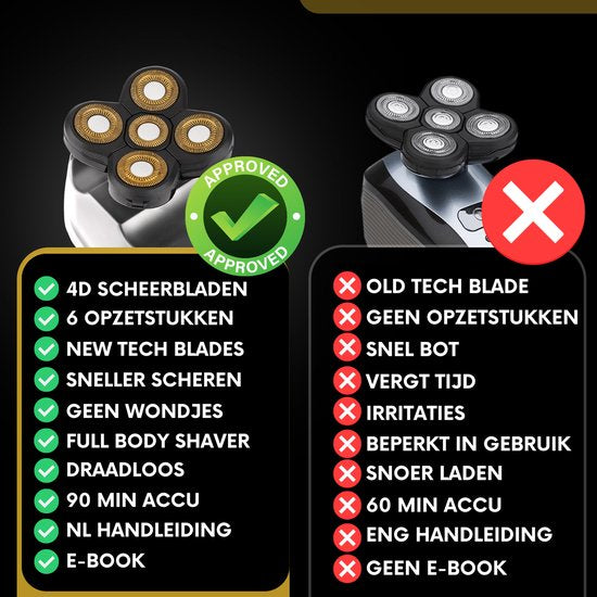 Les poils indésirables et les rasoirs qui s'émoussent rapidement et provoquent des irritations lors du rasage ? Le Sansbeauté® 6-in-1 SkullSharp Platinum | 5 HEAD avec deux têtes de rasage est la solution idéale ! Avec 5 ( !) têtes de rasage 4D flexibles, des accessoires polyvalents et un design sans fil, vous éliminerez tous les poils de votre tête, de votre visage et de votre corps à la vitesse de l'éclair ! Les 5 lames rotatives suivent sans effort les contours de votre visage et de votre tête, rasant chaque poil efficacement ! Grâce aux 6 accessoires différents, vous avez tout à portée de main, avec un seul investissement ! L'écran LED intégré permet de savoir quand nettoyer et recharger l'appareil. De plus, avec ce set, vous recevez un e-book exclusif avec de précieux conseils pour une expérience d'utilisation durable.En outre, ce set comprend une tête de rasage EXTRA d'une valeur de 22,99 € ! En bref, avec le Sansbeauté® 6-in-1 SkullSharp Platinum, vous avez la garantie d'une peau douce et soyeuse et de résultats parfaits!
