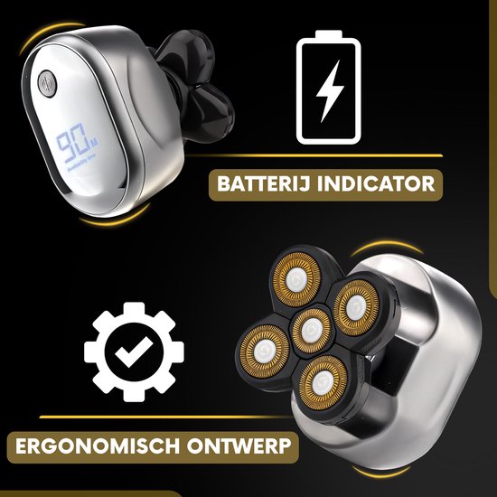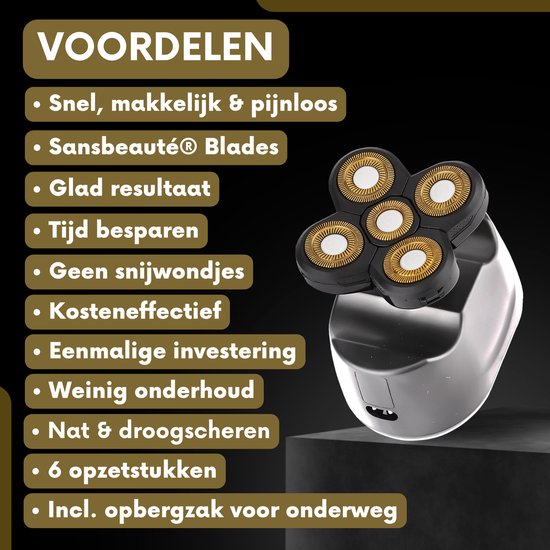 Rasoir pour homme 6-en-1 + tête de rasage supplémentaire - Tondeuse - Sansbeauté® SkullSharp Platinum - Rasoir pour crâne - Rasoir électrique pour le visage et la tête - Rasage de la tête - Wet & Dry - Electrique