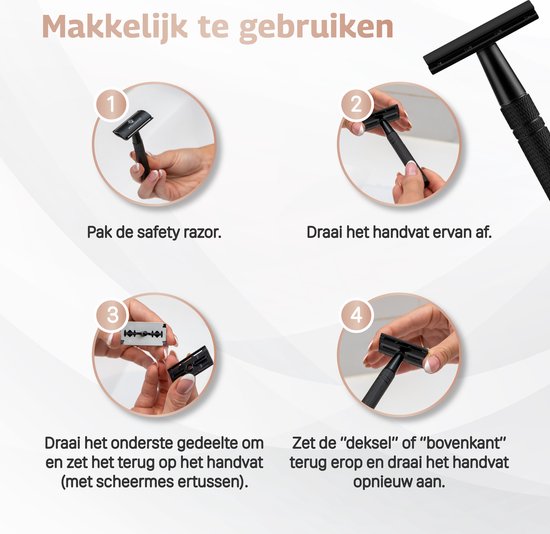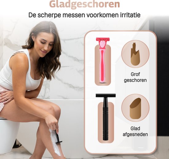 Les lames de beurre que vous devez jeter après une seule utilisation appartiennent au passé avec notre nouveau rasoir de sécurité ! Économisez de l'argent et réduisez les déchets tout en profitant d'une expérience de rasage inégalée. Idéalement adapté à toutes les parties du corps. Parfait pour :