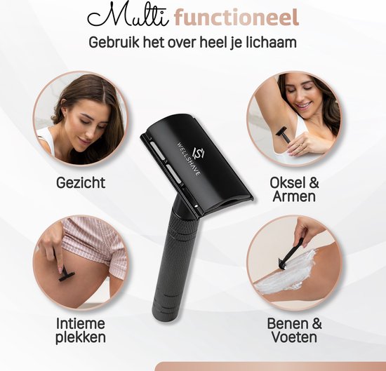 Wellshave Safety Razor Black - Stainless Steel + 20 Razors - Women & Men - Razor - Safety Razor - Double Edge - Single Blade