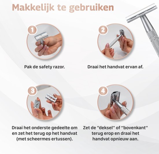 Les lames de rasoir qui doivent être jetées après une seule utilisation appartiennent au passé grâce à notre nouveau rasoir de sécurité ! Économisez de l'argent et réduisez vos déchets, tout en profitant d'une expérience de rasage inégalée. Parfait pour toutes les parties du corps. Idéal pour :