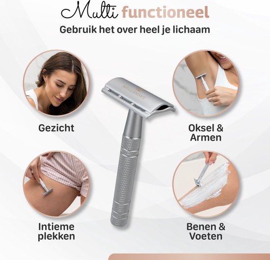 Wellshave Safety Razor Grey - Stainless Steel + 20 Razors - Women & Men - Razor - Safety Razor - Double Edge - Single Blade
