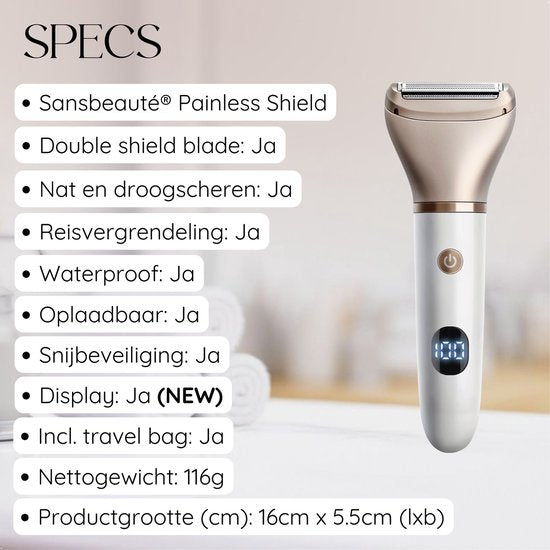 Rasoir féminin 2 en 1 avec écran - Visage - Aisselles - Jambes - Maillot - Sansbeauté® - Rasoir féminin - Epilation visage femme - Tondeuse femme - Rasoir bikini - Rechargeable par USB