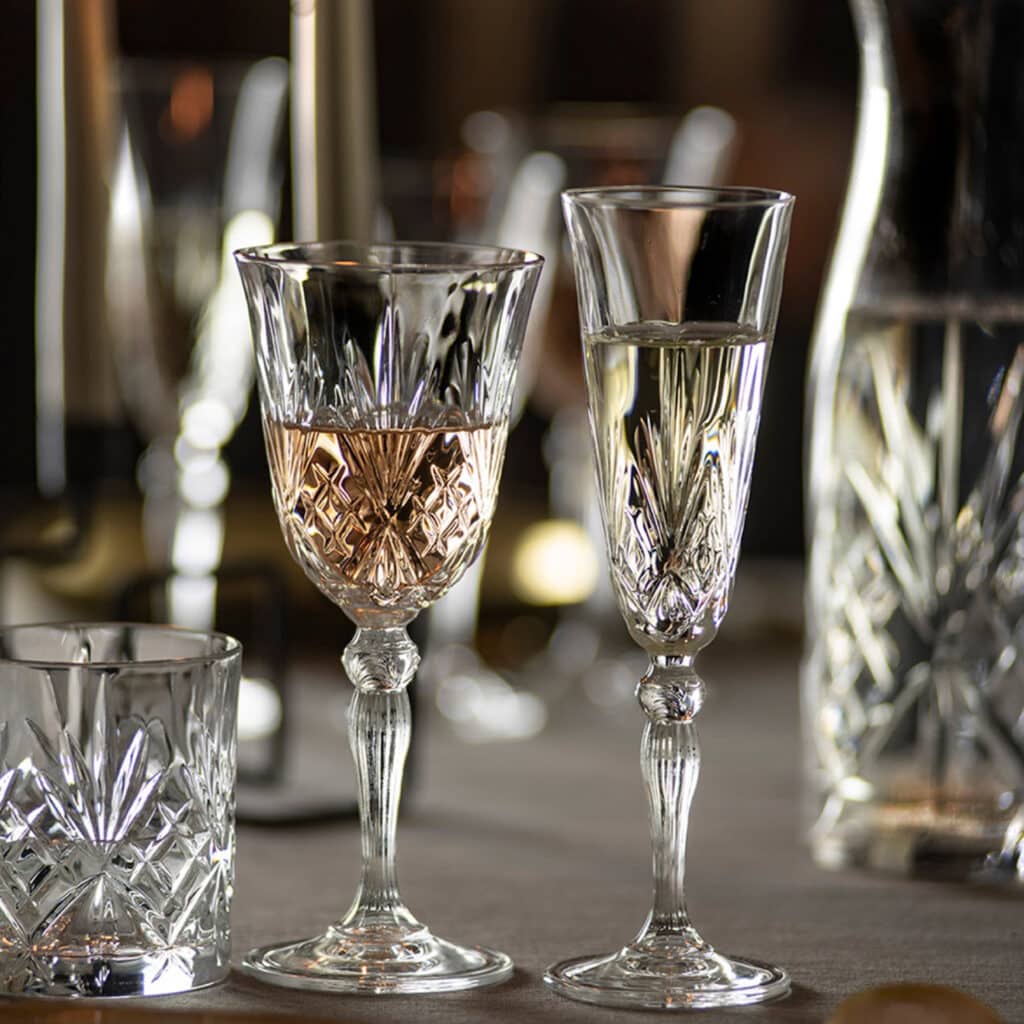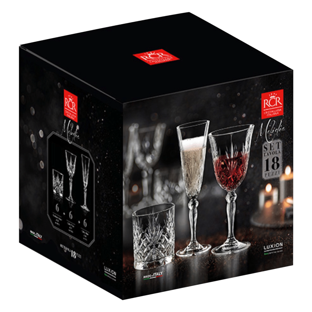 RCR Melodia 18-Piece Glass Set - Verres à vin 28 cl, Coupes à champagne 16 cl, Gobelets 32 cl - Verre en cristal