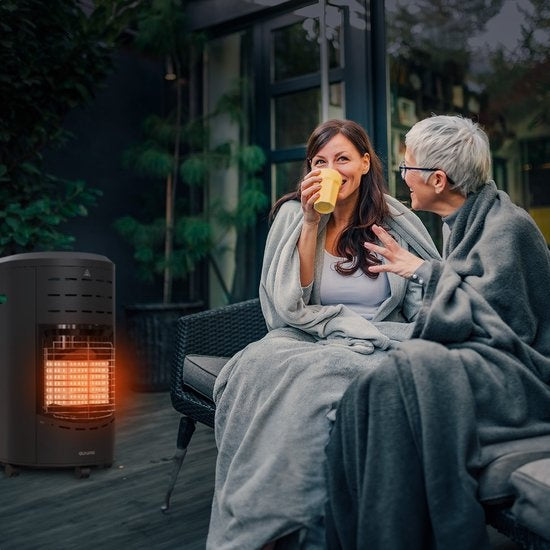Pendant les soirées plus fraîches, n'avez-vous jamais ressenti la nostalgie des chaudes nuits d'été où vous pouviez encore profiter de votre jardin, de votre véranda ou de votre gazebo pendant des heures ? Avec l'élégant poêle à gaz d'Auronic, vous pouvez vivre cette expérience tout au long de l'année. Ce poêle mobile combine le meilleur de la chaleur et du design pour transformer votre espace de vie en un lieu chaleureux. Vos avantages 3 niveaux de chaleur Utilisation à l'intérieur et à l'extérieur (à l'abri du vent) Protection contre les effondrements, protection contre l'oxygène et protection thermique Fonctionne au gaz, au butane et au propane Un design élégant et fonctionnel Le poêle à gaz abordable d'Auronic attire l'attention par son design élégant. Plus qu'un simple poêle, il s'agit d'un meuble élégant qui ne dépareillera certainement pas dans votre abri de jardin, votre véranda ou votre maison. Mais au-delà de son aspect élégant, ce réchaud a encore plus à offrir. Grâce à la housse de protection incluse, vous pouvez ranger le poêle à l'abri de la poussière pendant les mois les plus chauds, pour qu'il soit toujours au mieux de sa forme. Efficacité et puissance en trois réglages Ce poêle à gaz noir d'Auronic dispose de trois réglages de chaleur, ce qui vous permet de toujours régler la température idéale. Que vous recherchiez une chaleur douce ou puissante, ce poêle a tout ce qu'il vous faut. La consommation de gaz varie de 109 g/heure sur le réglage le plus bas à 305 g/heure sur le réglage le plus élevé. Cela signifie qu'avec une bouteille de gaz de 15 kg, vous pouvez chauffer jusqu'à 137 heures sur le réglage le plus bas et 49 heures sur le réglage le plus élevé. Votre sécurité avant tout Le réchaud à gaz Auronic n'est pas seulement efficace et élégant, il est aussi extrêmement sûr. Il est équipé d'un système O2 guard, une protection contre le manque d'oxygène qui garantit que le réchaud s'éteint de lui-même en cas de manque d'oxygène dans la pièce. Il est également doté d'un dispositif de sécurité thermique qui empêche la surchauffe. En outre, le poêle est doté d'un système de protection contre le renversement, qui garantit que l'appareil s'éteint immédiatement s'il tombe. La sécurité est toujours au premier plan. Facilement déplaçable et polyvalent Le réchaud à gaz Auronic est conçu pour être aussi flexible que possible. Grâce à ses roues, il est facile à déplacer et peut être utilisé aussi bien à l'intérieur qu'à l'extérieur. Avec une capacité à chauffer des pièces jusqu'à 60 m², vous pouvez l'utiliser où vous le souhaitez : dans le salon pendant une soirée cinéma confortable, sous la véranda pendant un dîner entre amis, ou même dans votre abri de jardin pendant les mois froids de l'hiver. Contenu de l'emballage Réchaud à gaz (1x) Housse de protection (1x) Tuyau de gaz (1x) Régulateur de gaz (1x) Pile AAA (1x) Manuel (1x) Bon à savoir Ce produit est principalement destiné à une utilisation à l'intérieur. Si vous souhaitez utiliser le réchaud à gaz à l'extérieur, nous vous recommandons de vous assurer que le produit est protégé du vent afin de réduire la perte de chaleur. La bouteille de gaz n'est pas incluse.
