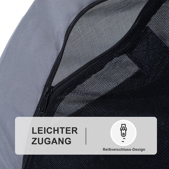 La housse est fabriquée en tissu Oxford hydrofuge, complété par une moustiquaire pratique et une protection supplémentaire à l'avant, offrant ainsi à votre compagnon à quatre pattes une protection optimale.