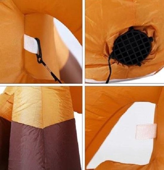 Il y a des œillets auxquels on peut attacher des câbles pour rendre l'animal plus solide. Il y a également un sac de sable cousu qui assure une position droite et stable de l'animal. Pour l'ancrage, 2 broches de terre et 2 cordes de haubanage de 100 cm sont incluses.