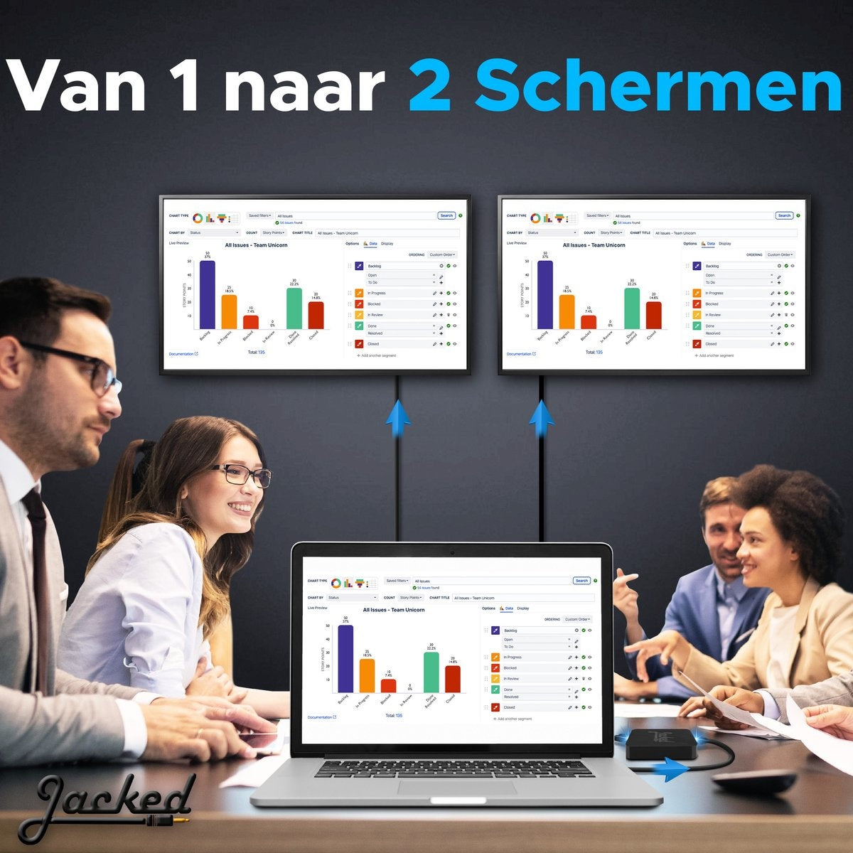 Avec le répartiteur HDMI bidirectionnel de Jacked, il est possible de diviser un signal HDMI en 2 entrées 1 sortie ou 1 sortie 2 entrées, afin de pouvoir utiliser un appareil sur 2 écrans différents. Un téléviseur, plus il est plat, mieux c'est pour qu'il puisse être accroché au mur. C'est un véritable casse-tête si vous devez régulièrement brancher des câbles et si vous utilisez un projecteur, c'est souvent encore plus difficile.